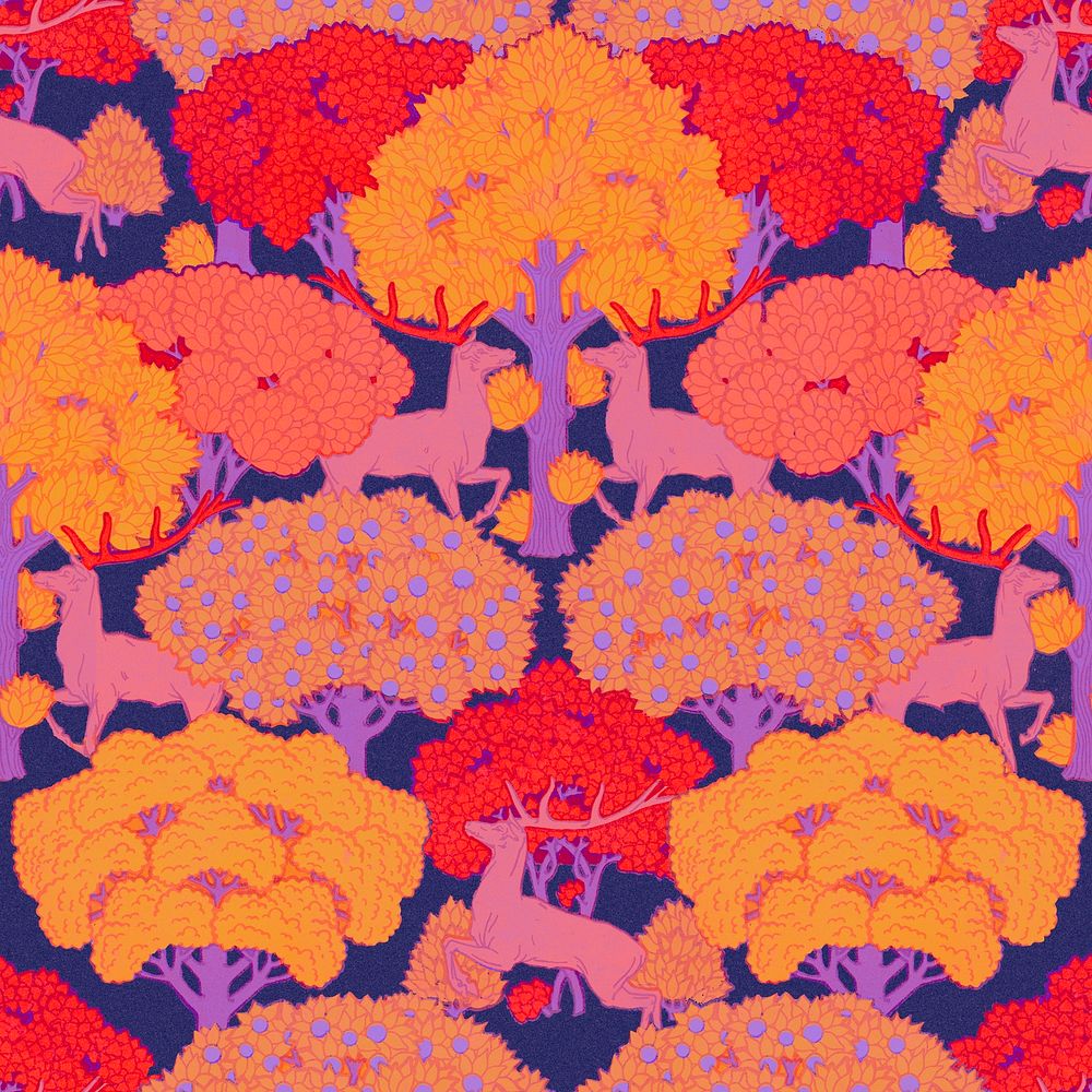 Colorful forest pattern background, vintage animal, Maurice Pillard Verneuil artwork remixed by rawpixel