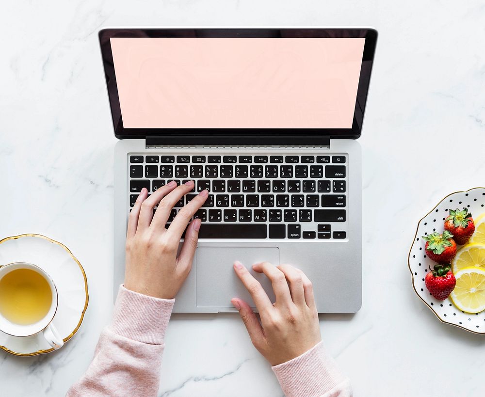 Laptop screen mockup, breakfast concept