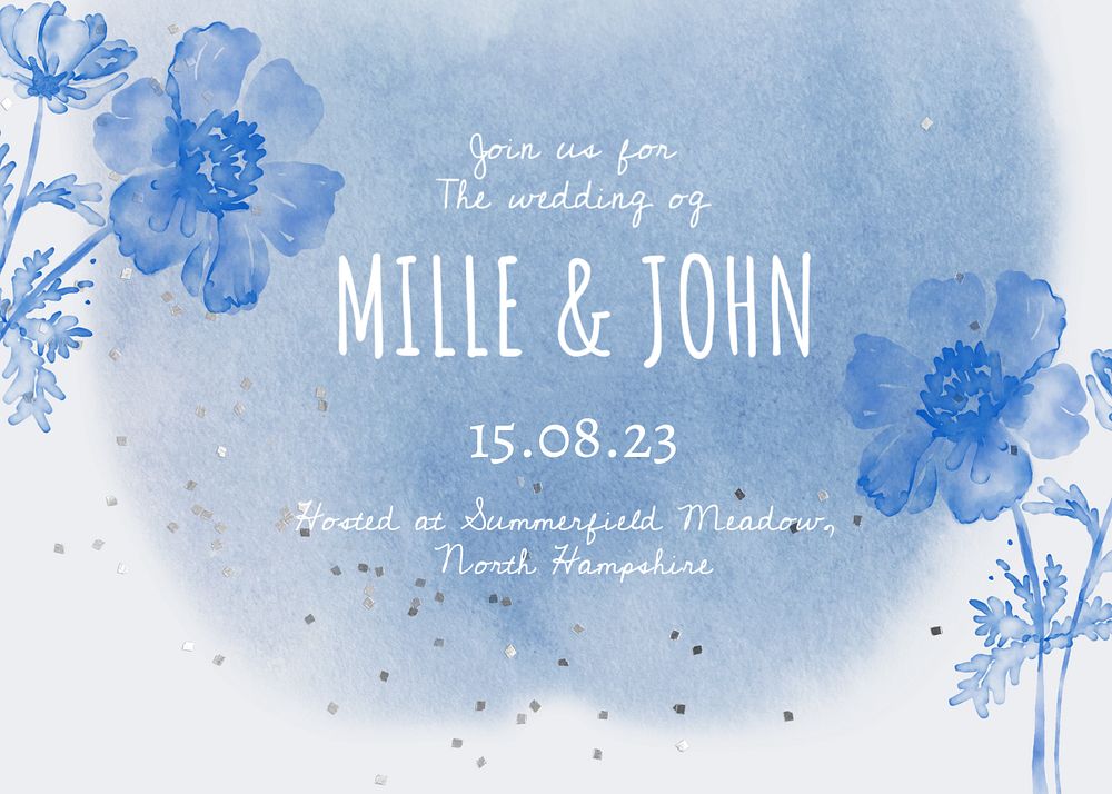 Winter wedding wedding invitation card template, blue watercolor landscape design