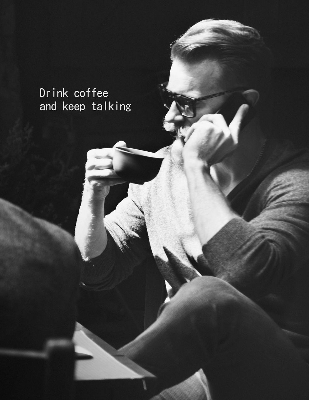 Coffee addict flyer template, man having phone call photo