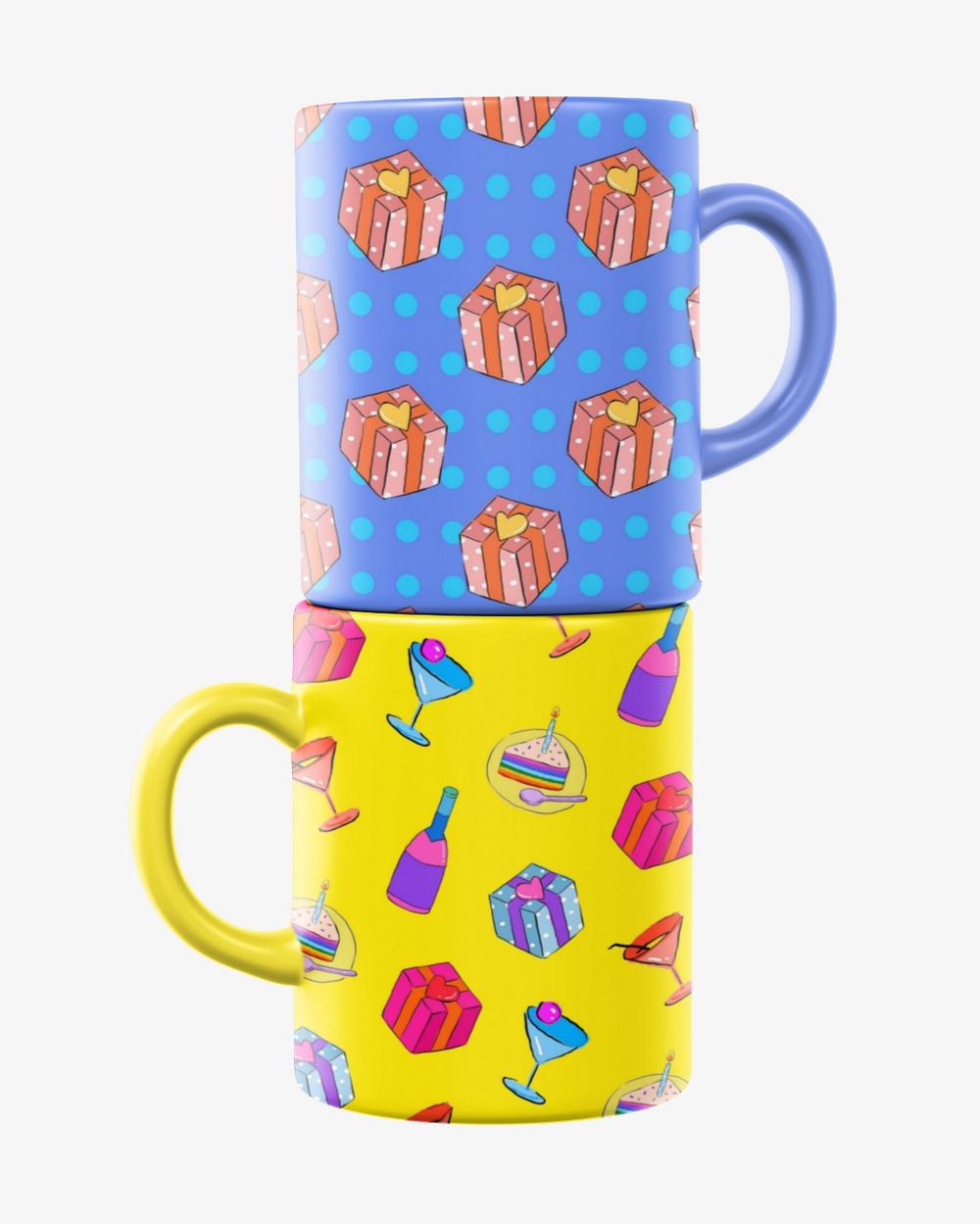 Ceramic coffee mugs mockup, birthday pattern product design