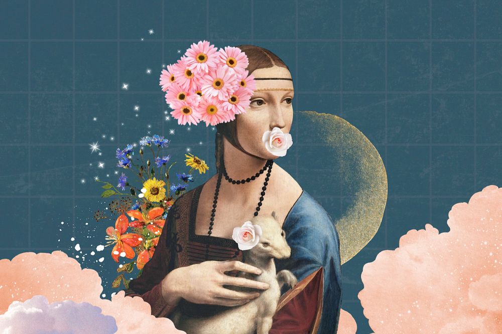 Lady with an Ermine collage art, Da Vinci's illustration remixed by rawpixel