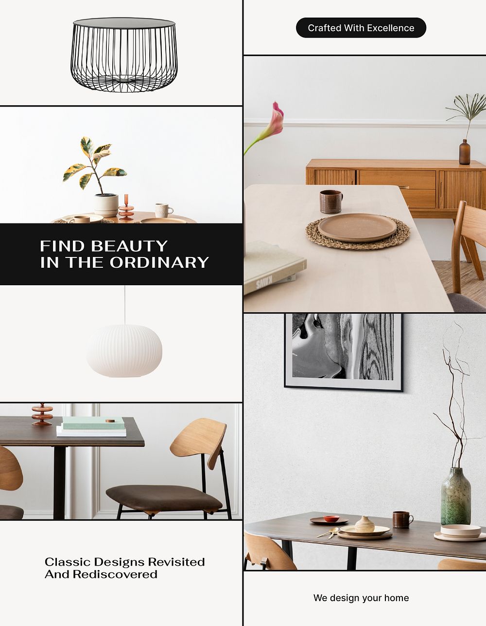 Home interior flyer editable template, photo collage design vector