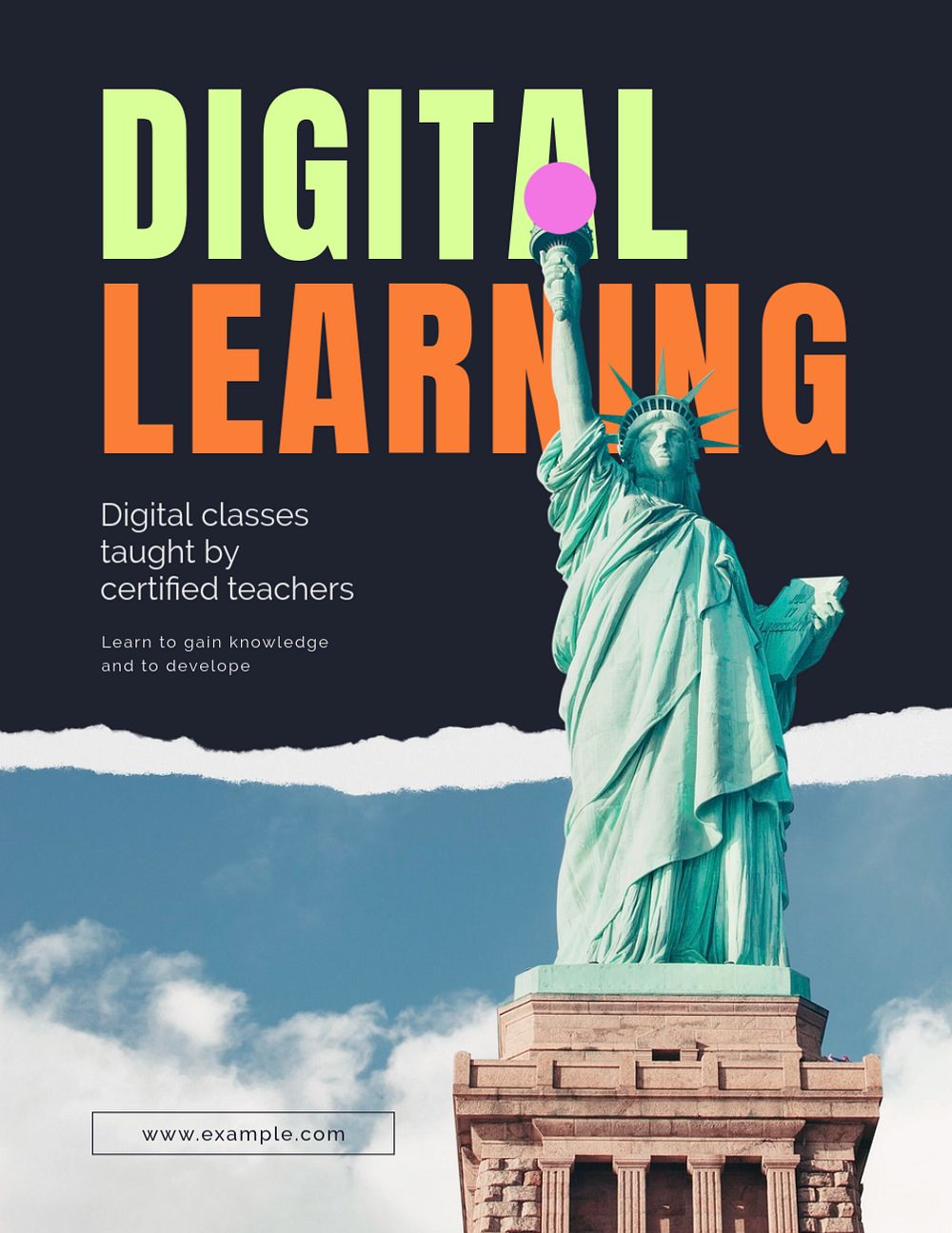 Digital learning flyer editable template, Statue of Liberty photo