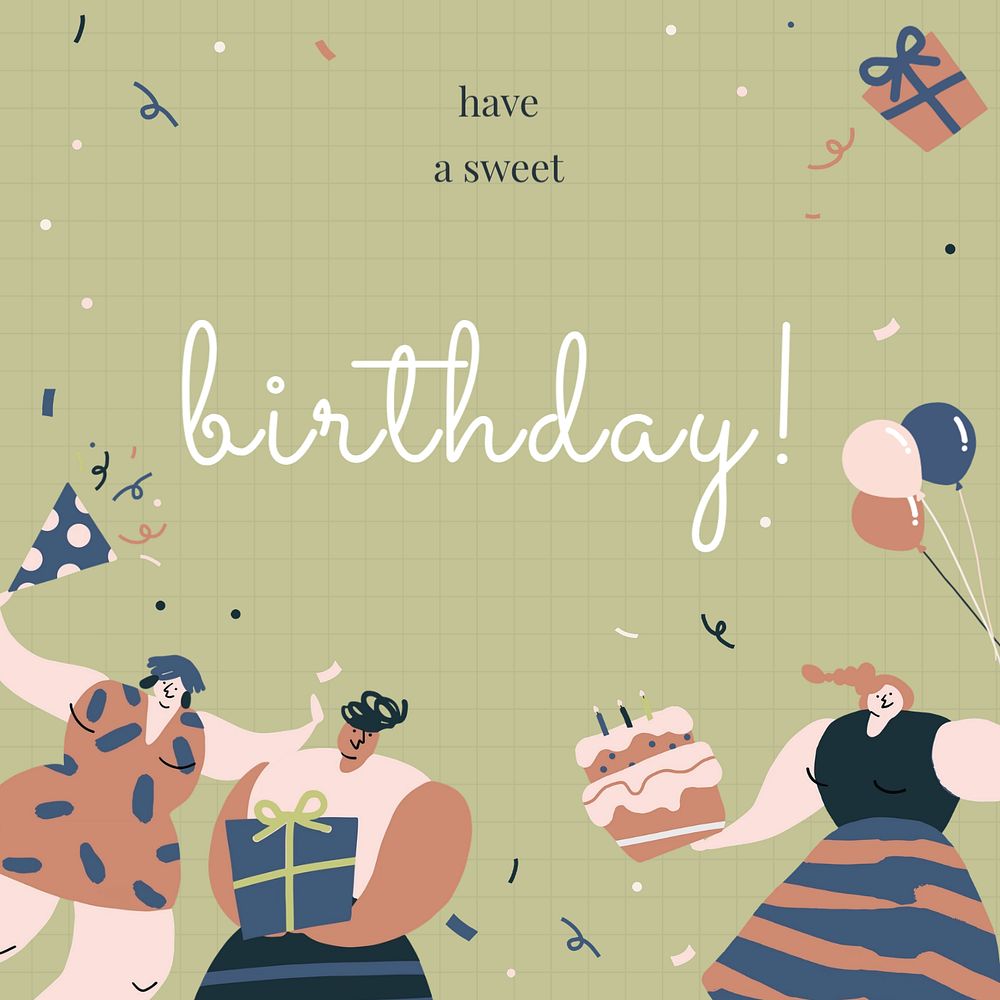 Birthday party Facebook post template, cute design