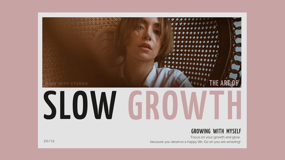 Pink aesthetic presentation editable template, slow growth text