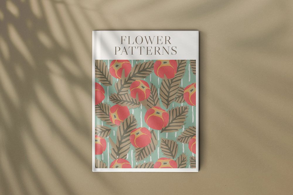 Customizable book mockup, flat lay design with leaf shadow