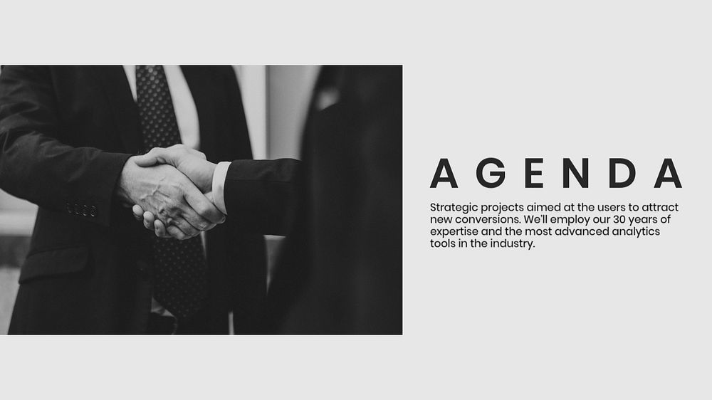 Business agenda PowerPoint presentation template, businessmen shaking hands photo