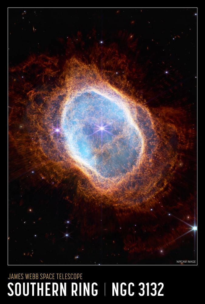 Southern Ring Nebula Poster from NASA’s James Webb Space Telescope (NIRCam Compass Image)