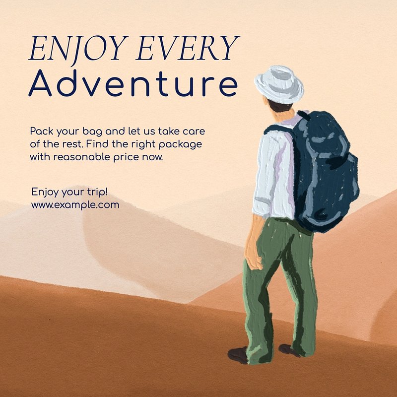 Edit TemplateaudiSaveSaveEdit Templatepeoplemanmountainblackinstagramdesignbackpacksocial mediaBackpacker aesthetic Instagram post template, travel adMorePremium designInfoEdit TemplateView personal and business licenseGet Premium from just$8 / monthExplore PremiumFree design resources and creative tools0Free foreverJoin FreeShareVideosTemplatesSimilarBackpacker aesthetic Instagram story template, travel adhttps://www.rawpixel.com/image/7523880/imageView licenseBackpacker aesthetic blog banner template, travel adhttps://www.rawpixel.com/image/7517336/imageView licenseHiking trails Instagram post templatehttps://www.rawpixel.com/image/14713211/hiking-trails-instagram-post-templateView licenseTravel agency business card template, backpackers photohttps://www.rawpixel.com/image/7521485/imageView licenseMountain travel Instagram post templatehttps://www.rawpixel.com/image/14493630/mountain-travel-instagram-post-templateView licenseExplore Instagram post template, editable texthttps://www.rawpixel.com/image/9326798/explore-instagram-post-template-editable-textView licenseVacation Instagram post template, editable designhttps://www.rawpixel.com/image/7616601/vacation-instagram-post-template-editable-designView licenseExplore the outdoors Instagram post template, editable texthttps://www.rawpixel.com/image/11717374/explore-the-outdoors-instagram-post-template-editable-textView licenseRock climbing Facebook post templatehttps://www.rawpixel.com/image/14427769/rock-climbing-facebook-post-templateView licenseDiscover the outdoors Instagram post template, editable texthttps://www.rawpixel.com/image/11717474/discover-the-outdoors-instagram-post-template-editable-textView licenseHiking trails Instagram post templatehttps://www.rawpixel.com/image/14444080/hiking-trails-instagram-post-templateView licenseExplore now Instagram post templatehttps://www.rawpixel.com/image/14561882/explore-now-instagram-post-templateView licenseConquer fear quote Instagram post template, editable designhttps://www.rawpixel.com/image/7625834/conquer-fear-quote-instagram-post-template-editable-designView licenseNature hike Instagram post template, editable social media designhttps://www.rawpixel.com/image/9801691/nature-hike-instagram-post-template-editable-social-media-designView licenseHiking Instagram post templatehttps://www.rawpixel.com/image/12828804/hiking-instagram-post-templateView licenseTrekking equipment sale Instagram post template, editable texthttps://www.rawpixel.com/image/11914486/trekking-equipment-sale-instagram-post-template-editable-textView licenseHiking bliss Instagram post templatehttps://www.rawpixel.com/image/12831069/hiking-bliss-instagram-post-templateView licenseCamping gears Instagram post templatehttps://www.rawpixel.com/image/12830300/camping-gears-instagram-post-templateView licenseVacation Instagram story template, editable design for social mediahttps://www.rawpixel.com/image/7826188/vacation-instagram-story-template-editable-design-for-social-mediaView licenseAdventure awaits Instagram post template, editable social media designhttps://www.rawpixel.com/image/9801689/adventure-awaits-instagram-post-template-editable-social-media-designView licenseAdventure package Instagram post templatehttps://www.rawpixel.com/image/13104307/adventure-package-instagram-post-templateView licenseAdventure travel Facebook post template, hiking designhttps://www.rawpixel.com/image/7405431/imageView licenseMountain Instagram post template, editable texthttps://www.rawpixel.com/image/12589884/mountain-instagram-post-template-editable-textView licenseHiking trips Instagram post template, editable social media designhttps://www.rawpixel.com/image/9608007/hiking-trips-instagram-post-template-editable-social-media-designView licenseMountaineering Equipment Instagram post template, editable texthttps://www.rawpixel.com/image/12479041/mountaineering-equipment-instagram-post-template-editable-textView licenseTravel aesthetic Instagram post template, tour agency adhttps://www.rawpixel.com/image/7524373/imageView licenseEscape travel service Instagram post template, editable designhttps://www.rawpixel.com/image/7625744/imageView licenseHiking trails Instagram post templatehttps://www.rawpixel.com/image/12703624/hiking-trails-instagram-post-templateView licenseExplore now Instagram post template, editable texthttps://www.rawpixel.com/image/12480797/explore-now-instagram-post-template-editable-textView licenseHiking gear sale Facebook post template, editable social media adhttps://www.rawpixel.com/image/9193388/hiking-gear-sale-facebook-post-template-editable-social-mediaView licenseItchy feet Instagram post template, editable designhttps://www.rawpixel.com/image/7625680/itchy-feet-instagram-post-template-editable-designView licenseCamping adventure Instagram post template, editable social media designhttps://www.rawpixel.com/image/9737343/camping-adventure-instagram-post-template-editable-social-media-designView licenseWanderlust Instagram post template, editable designhttps://www.rawpixel.com/image/7625787/wanderlust-instagram-post-template-editable-designView licenseMountain trekking vlog Instagram post template, editable texthttps://www.rawpixel.com/image/10711436/mountain-trekking-vlog-instagram-post-template-editable-textView licenseEscape travel service Instagram story template, editable design for social mediahttps://www.rawpixel.com/image/7910282/png-adventure-back-view-backpackerView licenseClimbing club Instagram post template, editable texthttps://www.rawpixel.com/image/12510967/climbing-club-instagram-post-template-editable-textView licenseMountain climbing Facebook post template, editable social media adhttps://www.rawpixel.com/image/9217564/mountain-climbing-facebook-post-template-editable-social-mediaView licenseHiking trips Instagram post template, editable texthttps://www.rawpixel.com/image/10221177/hiking-trips-instagram-post-template-editable-textView licenseMountaineering blog Instagram story template,