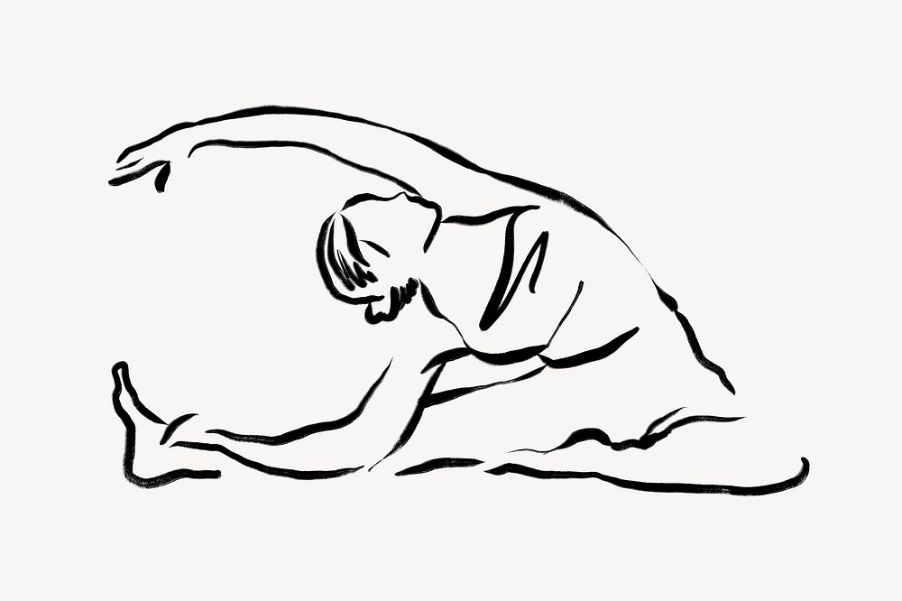 Yoga pose collage element, line art illustration psd