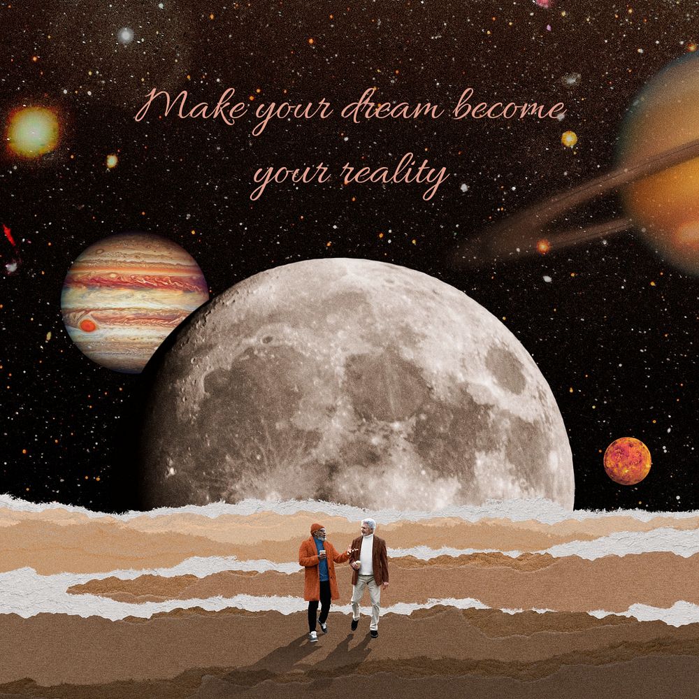 Surreal space Instagram post template, torn paper collage art remixed media
