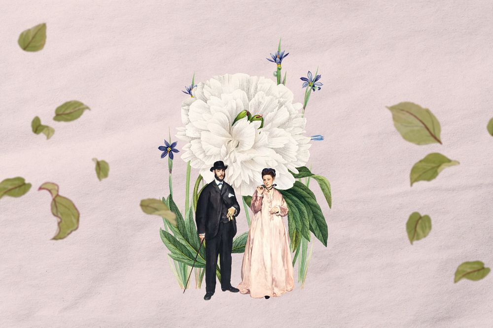 Wedding ceremony editable background, vintage flower collage art, remixed media