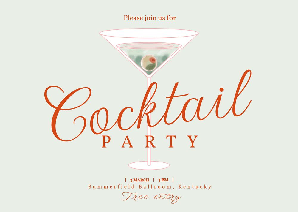 Cocktail party invitation card template, editable design