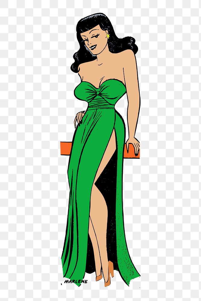 Hot girl in green dress png sticker, transparent background.