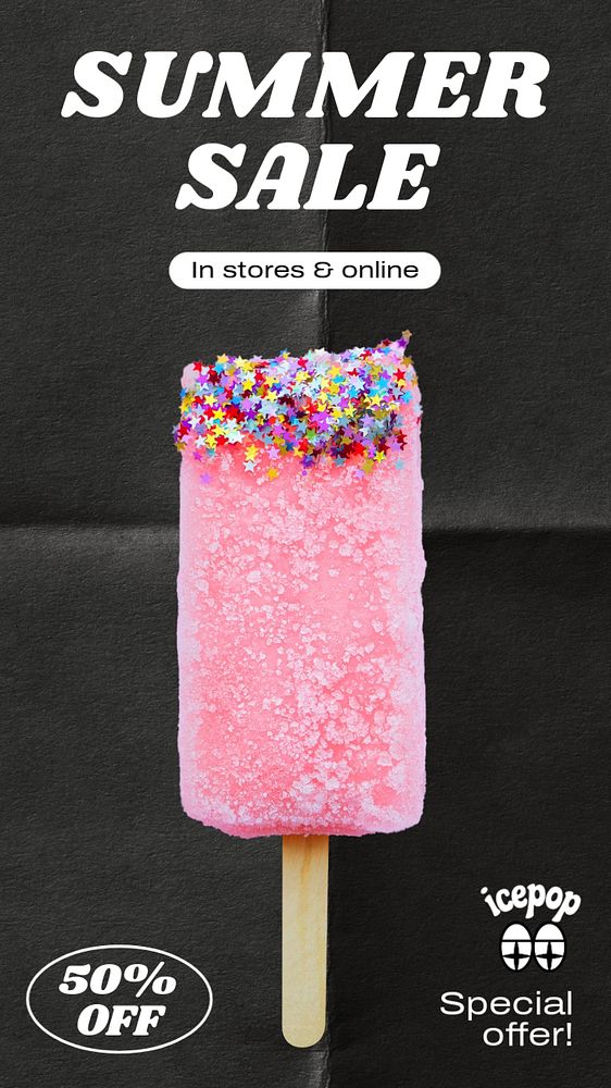 Pink popsicle Instagram story template, Summer sale