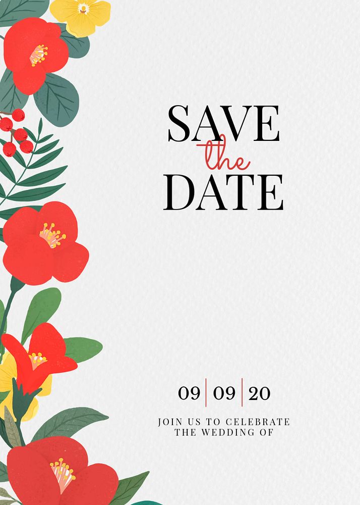 Wedding invitation card template, floral aesthetic design