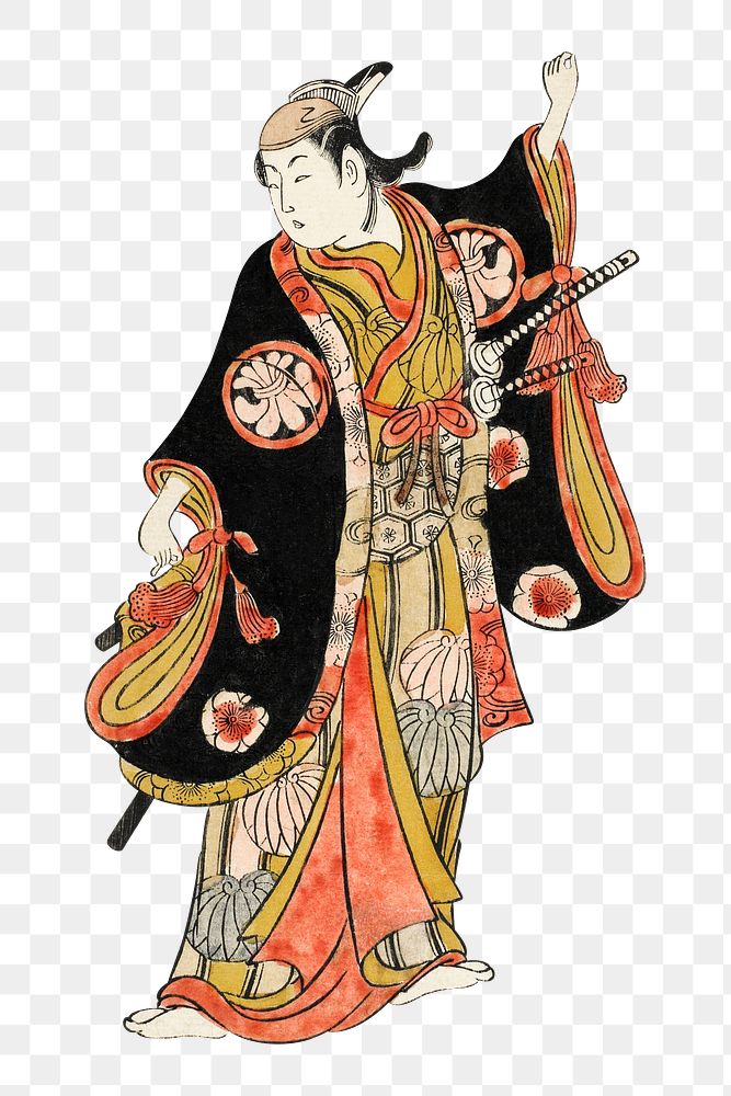 Japanese man in kimono png on transparent background. Remastered by rawpixel.