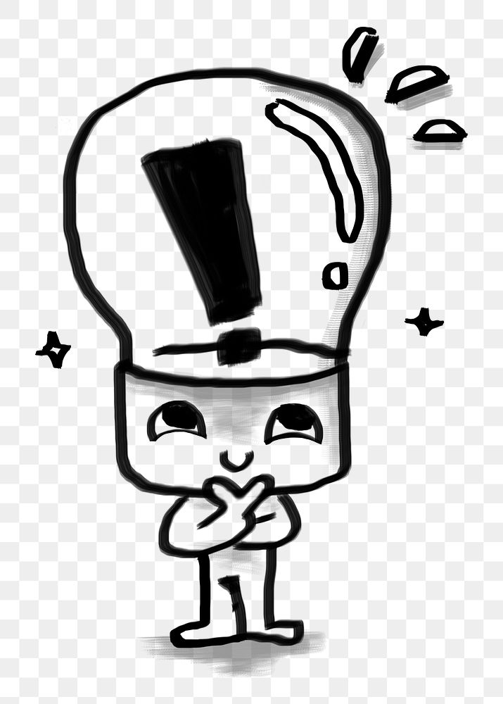 Light bulb png cartoon character, creative ideas doodle, transparent background