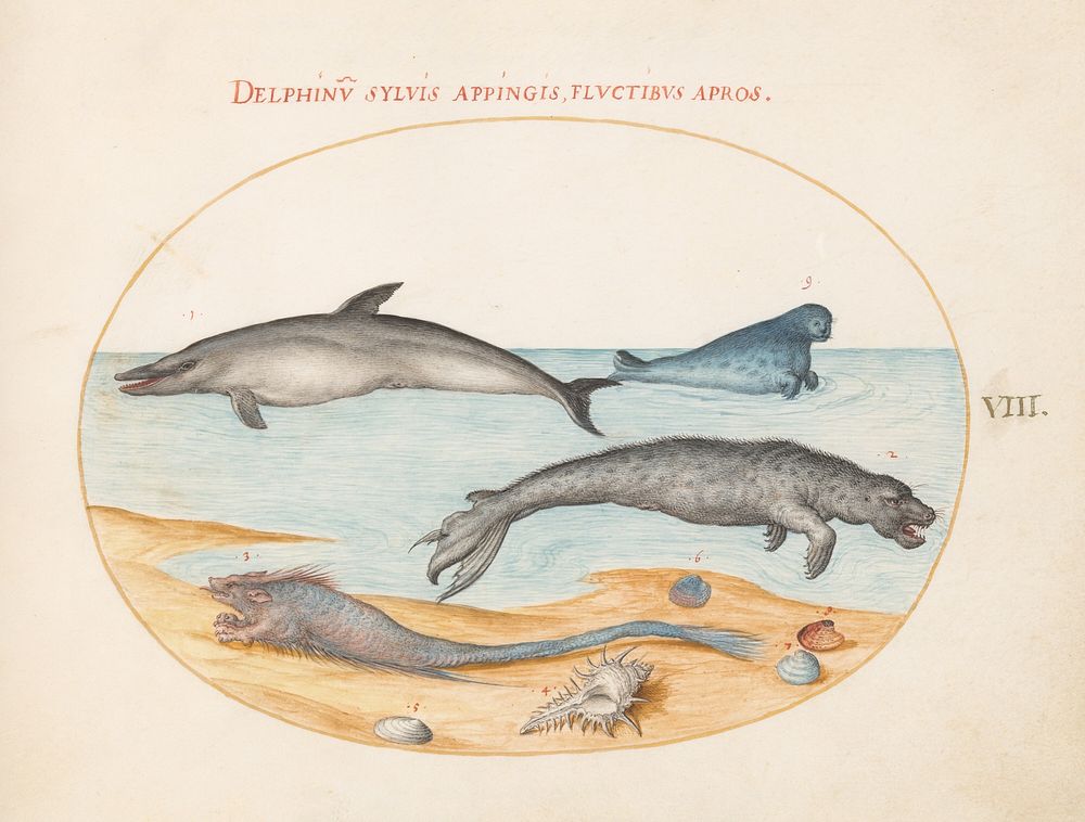 Plate VIII: Animalia Aqvatilia et Cochiliata (c. 1575-1580) painting in high resolution by Joris Hoefnagel.