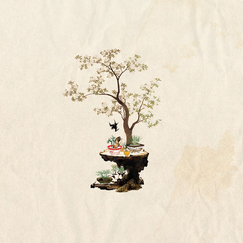 Editable vintage Japanese bonsai, ukiyo-e remix design