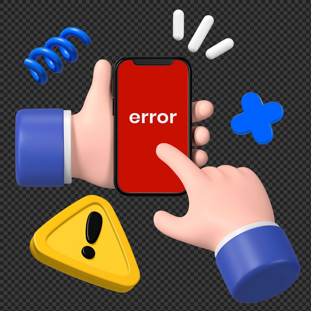 Smartphone system error, 3D hands illustration, editable elements