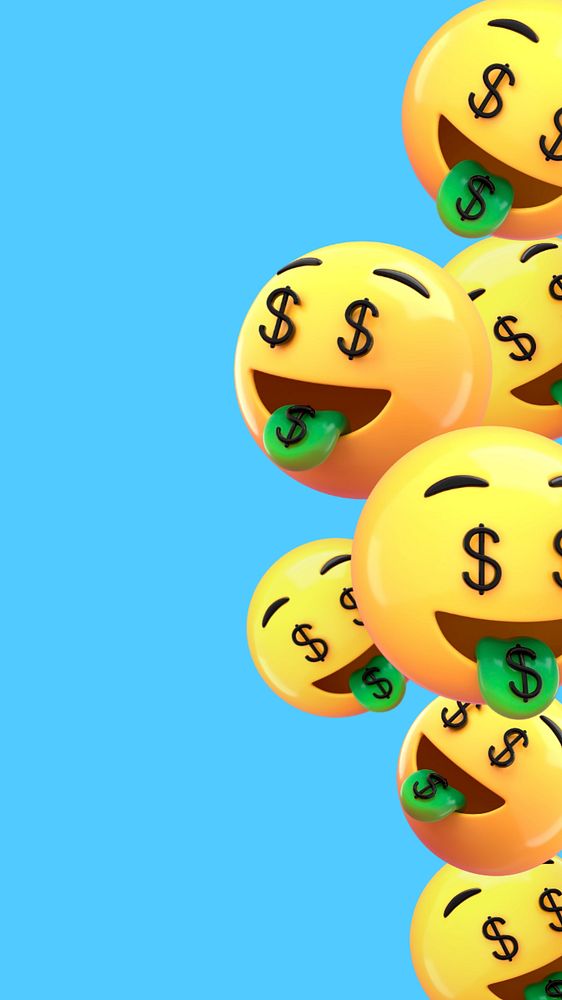 Money-mouth face emoticon iPhone wallpaper, finance concept, editable design