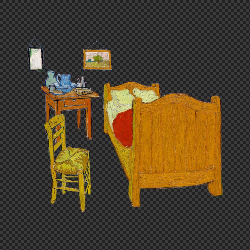 Van Gogh's bedroom png sticker, mixed media editable design. Remixed by rawpixel.