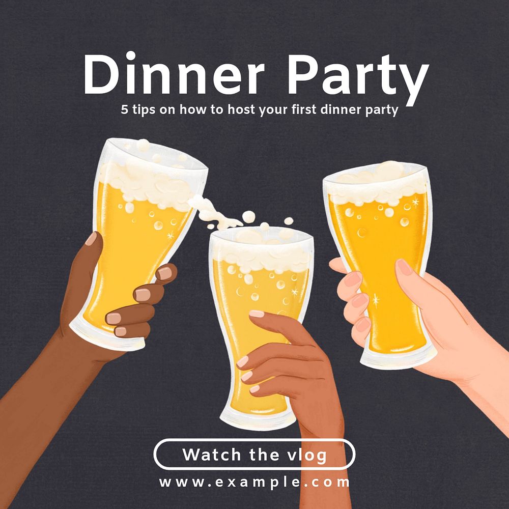 Party invitation Instagram post template, editable digital painting remix