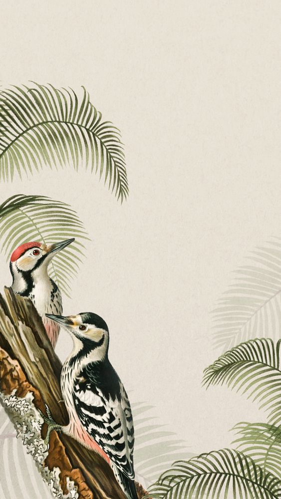 Vintage exotic birds iPhone wallpaper, wildlife border frame, editable design