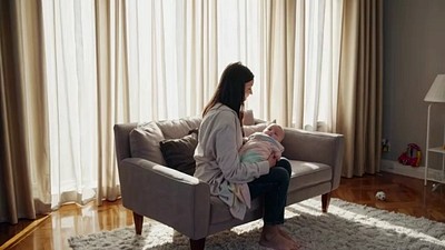 A Husband Holds His Wife's Hand During Delivery of Their Baby in Loretto Hospital in New Ulm, Minnesota.