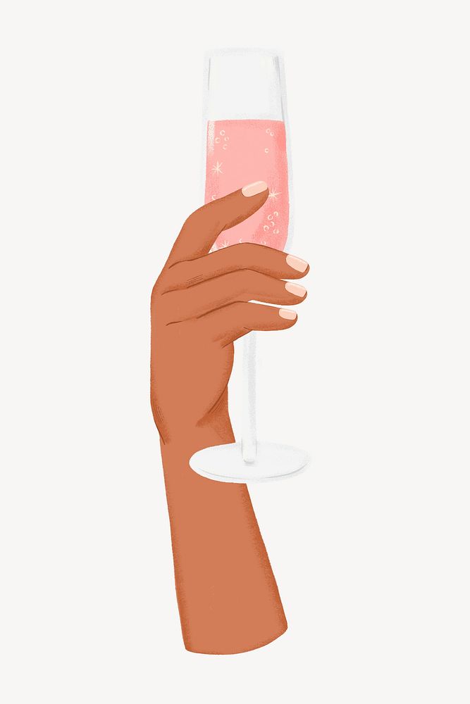 Hand raising champagne glass, party illustration