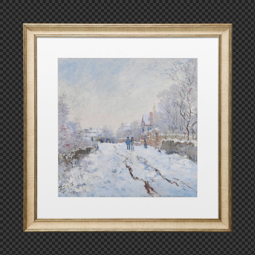 Gold frame mockup element, Claude Monet's Snow at Argenteuil remixed by rawpixel