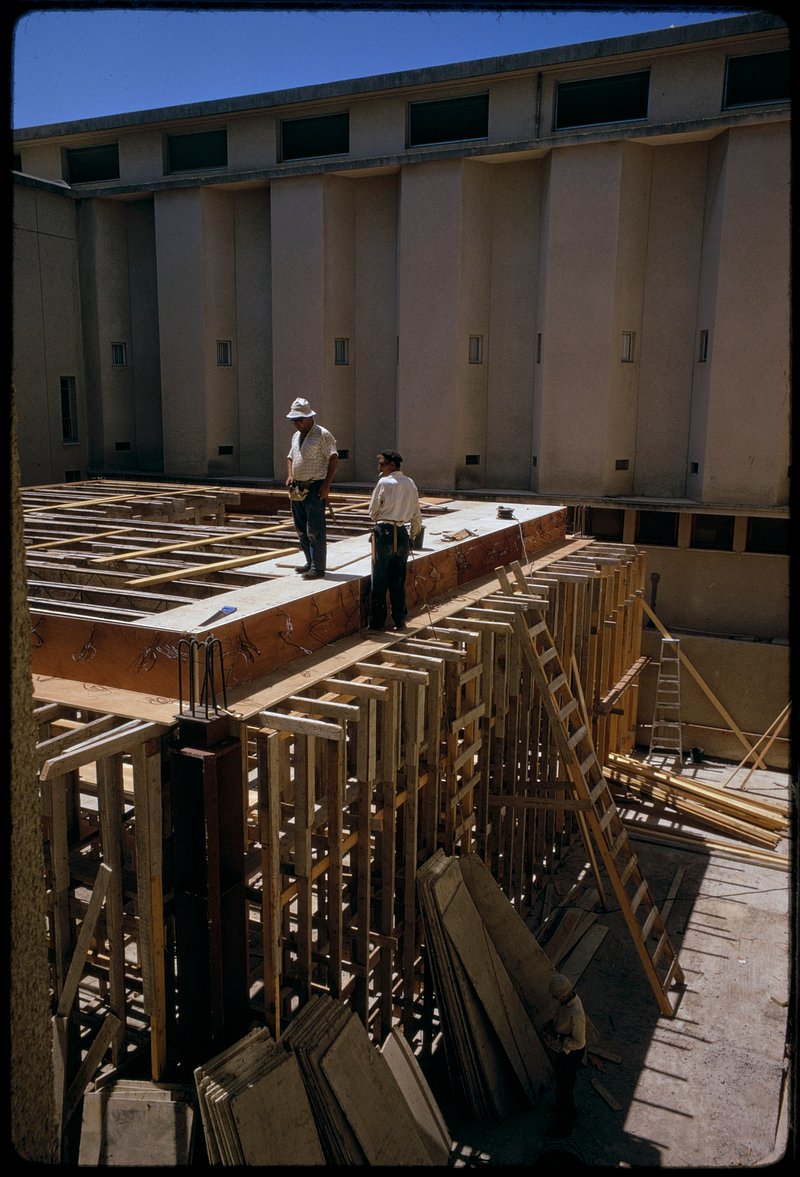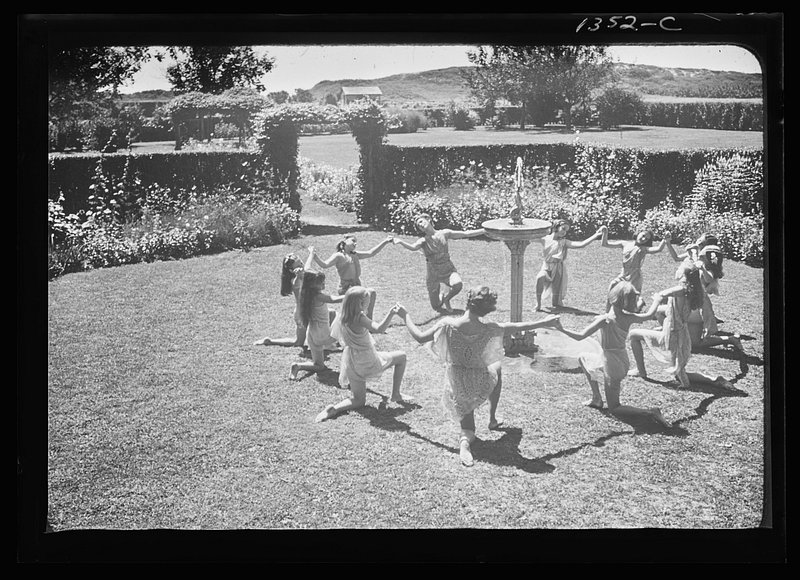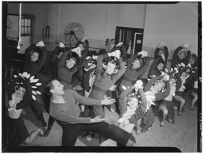 The "Celebrations" Group of Marilyn Woods Rehearses Dance on the Roof of the Fifth Third Bank Building Overlooking Fountain Square. They Are Using the Safety Rail as a Dance Bar 08/1973. Photographer: Hubbard, Tom. Original public domain image from Flickr