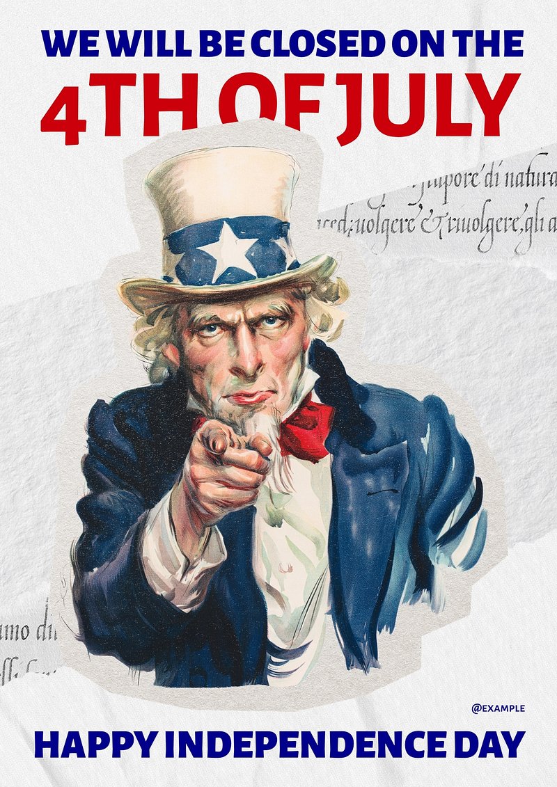 Edit ImageCropAom W.SaveSaveEdit Imageamericauncle samvintage uncle sampatriotic vintagepersonartmanvintageUncle Sam, American patriotism illustration. Remixed by rawpixel.MorePremium imageOriginal ArtInfoOriginal artwork digitally enhanced by rawpixel.JPEGLow Resolution 1200 x 1200 pxHigh Resolution (HD) 2700 x 2700 px | 300 dpiView personal and business licenseGet Premium from just$8 / monthExplore PremiumFree design resources and creative tools0Free foreverJoin FreeShareVideosTemplatesSimilarIndependence day Instagram post templatehttps://www.rawpixel.com/image/10732012/independence-day-instagram-post-templateView licenseUncle Sam, American patriotism clipart psd. Remixed by rawpixel.https://www.rawpixel.com/image/8825567/psd-art-vintage-illustrationView licenseVintage costume Instagram post templatehttps://www.rawpixel.com/image/13144708/vintage-costume-instagram-post-templateView licenseUncle Sam American vintage illustration isolated on white, vector. Remixed by rawpixel.https://www.rawpixel.com/image/16915577/vector-person-art-uncle-samView licenseHiring poster template, editable text and designhttps://www.rawpixel.com/image/12508521/hiring-poster-template-editable-text-and-designView licenseUncle Sam png American sticker, transparent background. Remixed by rawpixel.https://www.rawpixel.com/image/8825565/png-art-vintage-illustrationView licenseHiring Instagram story template, editable texthttps://www.rawpixel.com/image/12508553/hiring-instagram-story-template-editable-textView licenseAesthetic US's Uncle sam psd. Remastered by rawpixelhttps://www.rawpixel.com/image/8564288/psd-aesthetic-art-vintage-illustrationView licenseHiring blog banner template, editable texthttps://www.rawpixel.com/image/12508477/hiring-blog-banner-template-editable-textView licenseUncle Sam, American patriotism illustration in bubble. Remixed by rawpixel.https://www.rawpixel.com/image/9216622/image-art-vintage-illustrationView licenseVote now Instagram poster template, editable text and designhttps://www.rawpixel.com/image/12587479/vote-now-instagram-poster-template-editable-text-and-designView licenseAesthetic US's Uncle sam vintage illustration isolated on white, vector. Remixed by rawpixel.https://www.rawpixel.com/image/16916790/vector-aesthetic-person-artView licenseHiring Instagram post template, editable texthttps://www.rawpixel.com/image/11926857/hiring-instagram-post-template-editable-textView licenseUncle Sam, paper collage element, remixed by rawpixel.https://www.rawpixel.com/image/9220241/image-paper-texture-art-vintageView licenseJuly 4th celebration poster template, editable vintage design remastered and made editable by rawpixelhttps://www.rawpixel.com/image/8723257/png-4th-july-poster-1918-americaView licenseAesthetic US's Uncle sam png on transparent background. Remastered by rawpixelhttps://www.rawpixel.com/image/8564290/png-aesthetic-artView licenseJobs Instagram post template, editable texthttps://www.rawpixel.com/image/9814472/jobs-instagram-post-template-editable-textView licenseUncle Sam png sticker, transparent background, remixed by rawpixel.https://www.rawpixel.com/image/9220257/png-paper-texture-artView licensePresident's day Instagram story template, editable texthttps://www.rawpixel.com/image/11916775/presidents-day-instagram-story-template-editable-textView licenseAmerican soldiers wanted poster, aesthetic lithograph by James Montgomery Flagg. Original public domain image by James…https://www.rawpixel.com/image/8543934/image-aesthetic-art-vintageFree Image from public domain licenseMilitary service Instagram post template, editable texthttps://www.rawpixel.com/image/11849287/military-service-instagram-post-template-editable-textView licenseUncle Sam png American patriotism sticker, bubble design transparent background. Remixed by rawpixel.https://www.rawpixel.com/image/9216623/png-art-collageView licenseVote now Instagram story template, editable texthttps://www.rawpixel.com/image/11916744/vote-now-instagram-story-template-editable-textView licenseUncle sam, James Montgomery Flagg's artwork in plastic wrap isolated on black design. Remixed by rawpixel.https://www.rawpixel.com/image/9210107/image-plastic-texture-art-vintageView licenseVote now Instagram Instagram post template, editable texthttps://www.rawpixel.com/image/12587427/vote-now-instagram-instagram-post-template-editable-textView licenseUncle sam png sticker, James Montgomery Flagg's artwork in plastic wrap transparent background. Remixed by rawpixel.https://www.rawpixel.com/image/9210102/png-plastic-texture-artView licenseVote now Instagram blog banner template, editable texthttps://www.rawpixel.com/image/12587412/vote-now-instagram-blog-banner-template-editable-textView licenseAesthetic US's Uncle sam illustration. Remastered by rawpixelhttps://www.rawpixel.com/image/8564289/image-aesthetic-art-vintage-illustrationView licenseUS navy recruiting poster template, editable vintage design remastered and made editable by rawpixelhttps://www.rawpixel.com/image/8719421/png-america-american-artView licenseUncle Sam pointing finger, paper collage element, remixed by rawpixel.https://www.rawpixel.com/image/9214901/image-aesthetic-paper-texture-artView licensevoting Instagram post template, editable texthttps://www.rawpixel.com/image/11895240/voting-instagram-post-template-editable-textView licenseI am telling you--On June 28th I expect you to enlist in the army of war savers to back up my army of fighters (1918)…https://www.rawpixel.com/image/8639220/image-art-vintage-public-domainFree Image from public domain licenseWe're hiring poster template, editable text and designhttps://www.rawpixel.com/image/12098101/were-hiring-poster-template-editable-text-and-designView licenseUncle sam, James Montgomery Flagg's artwork in bubble. Remixed by rawpixel.https://www.rawpixel.com/image/9211020/image-aesthetic-art-vintage-illustrationView licenseHiring poster template, editable text and designhttps://www.rawpixel.com/image/12098167/hi