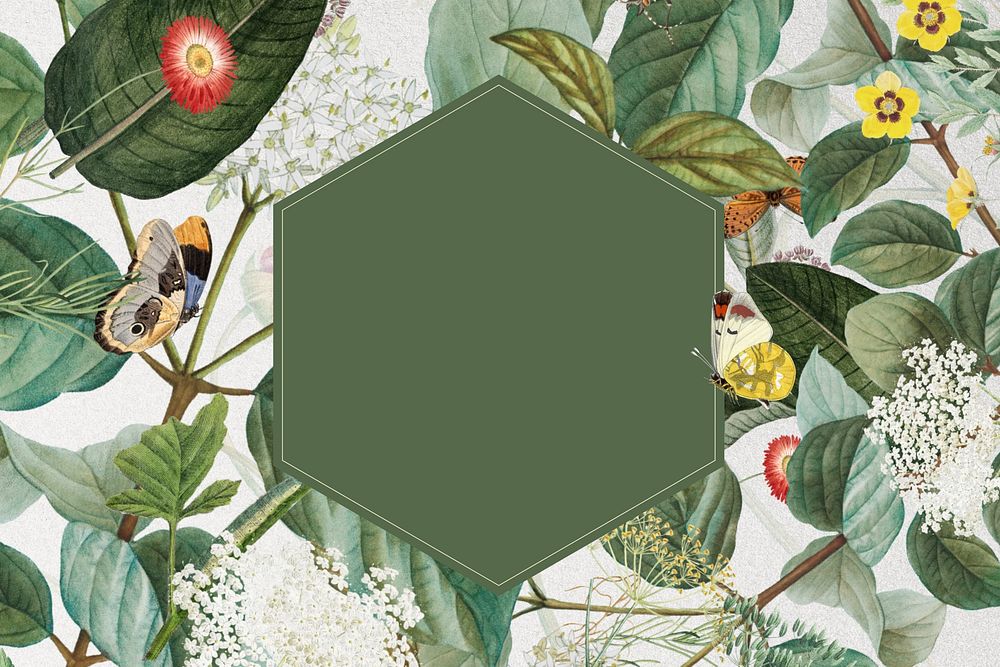 Exotic butterfly patterned frame background, vintage botanical illustration