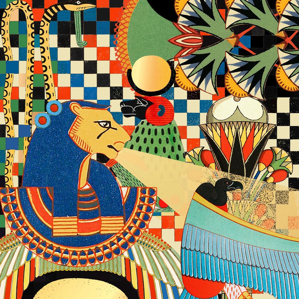 Ancient Egypt patterned background, colorful vintage illustration, editable design