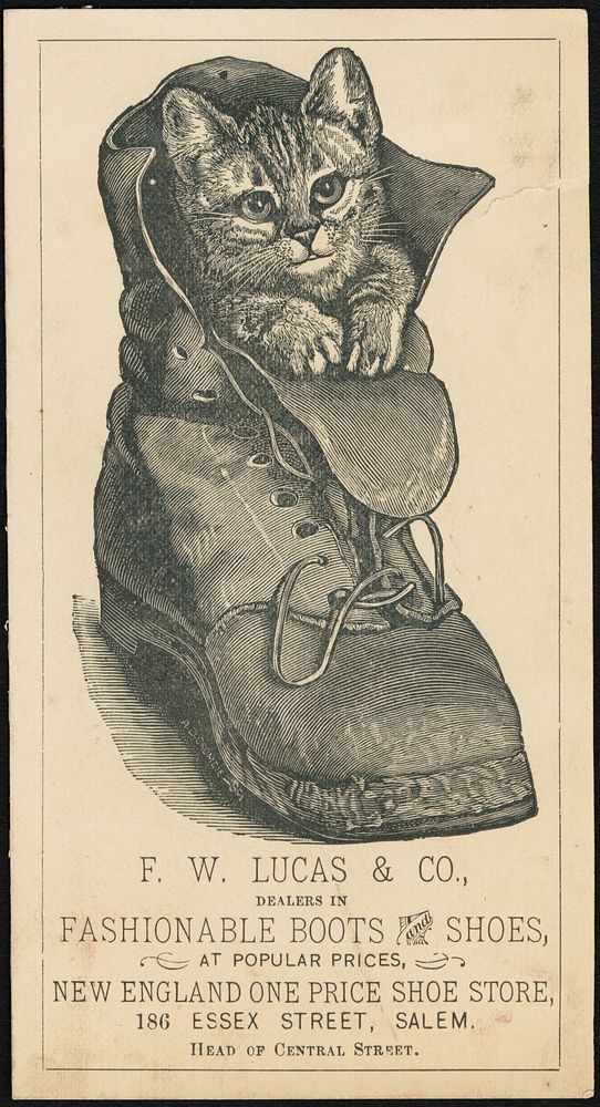 F. W. Lucas & Co., dealers in fashionable boots and shoes at popular prices, New England one price shoe store, 186 Essex Street, Salem.
