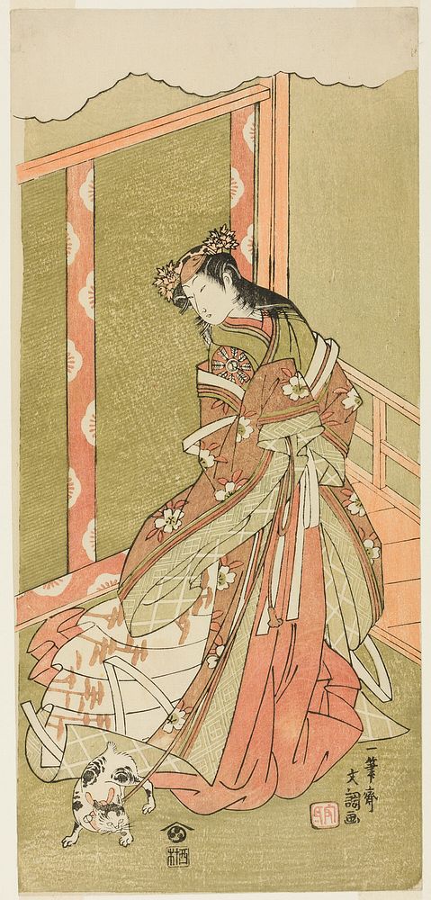 The Actor Nakamura Noshio I as the Third Princess (Nyosan no Miya) in the Play Fuki Kaete Tsuki mo Yoshiwara (Rethatched Roof: The Moon also Shines Over the Yoshiwara Pleasure District), Perfromed at the Morita Theater from the First Day of the Eleventh Month, 1771 by Ippitsusai Buncho