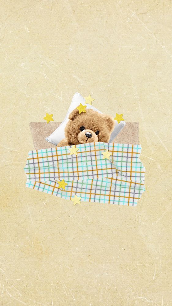 Sleeping teddy bear mobile wallpaper, aesthetic paper collage
