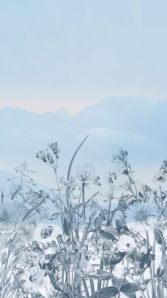 Blue floral mobile wallpaper, vintage botanical illustration