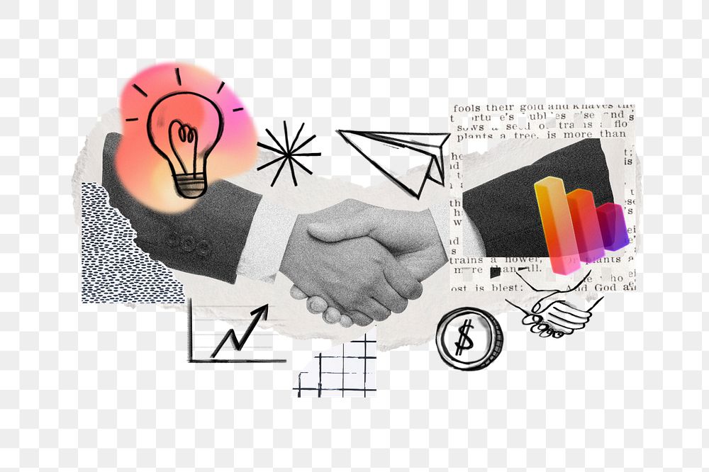 Business partnership handshake png, doodle remix, editable design