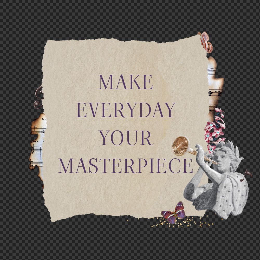 Inspirational quote element png, editable ephemera ripped paper collage remix design