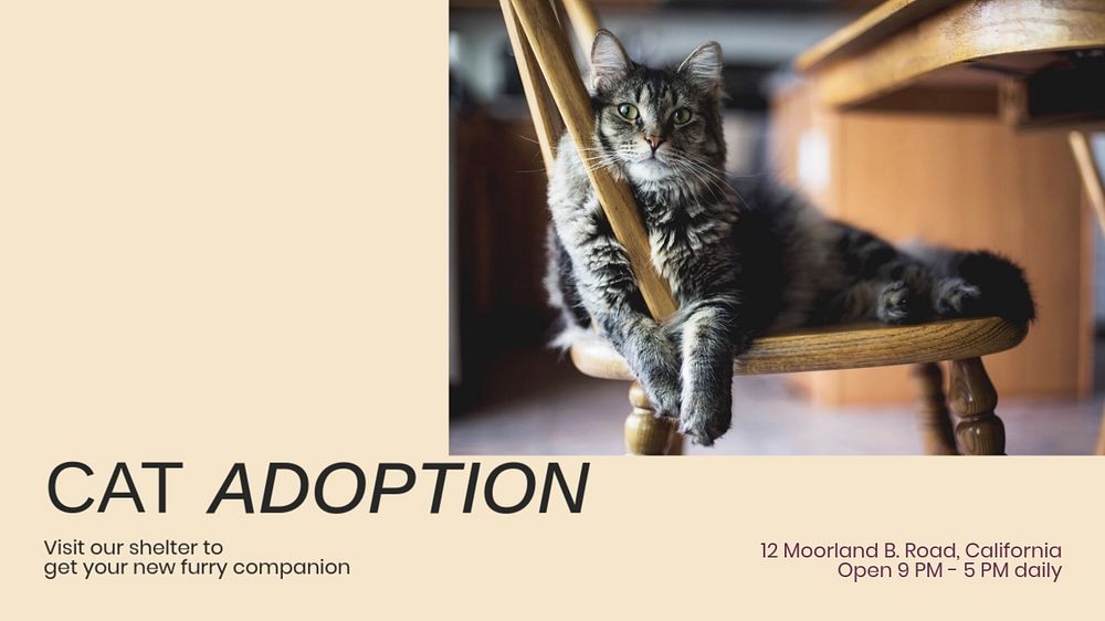Cat adoption blog banner template, editable text & design