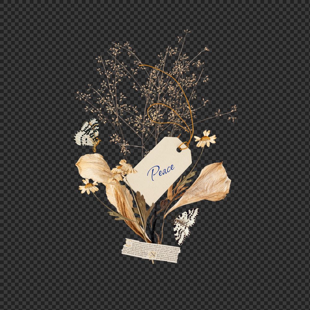 Peace word png, Autumn flower bouquet collage art, editable design