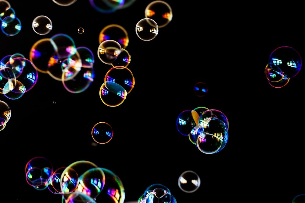 Bubbles floating in the air in the black background