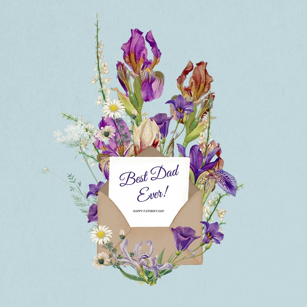 Best dad ever word, aesthetic flower bouquet collage art