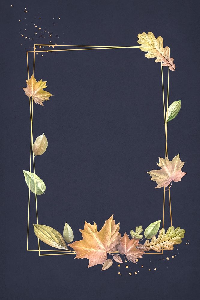 Autumn leafy rectangle gold frame illustration