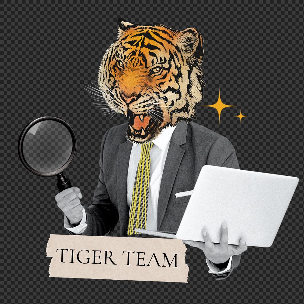 Tiger team word png sticker, tiger head businessman remix, customizable design
