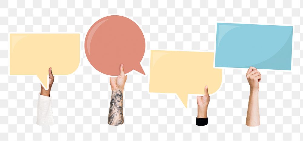 Hand holding png speech bubble sticker, transparent background